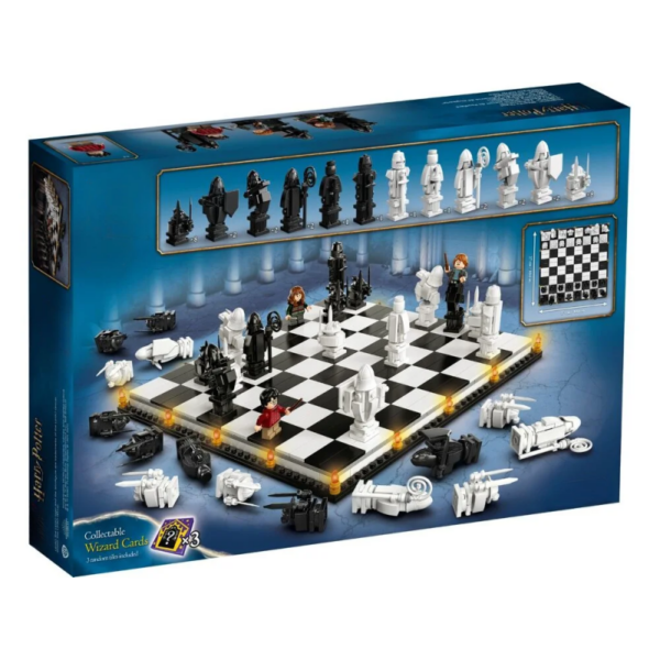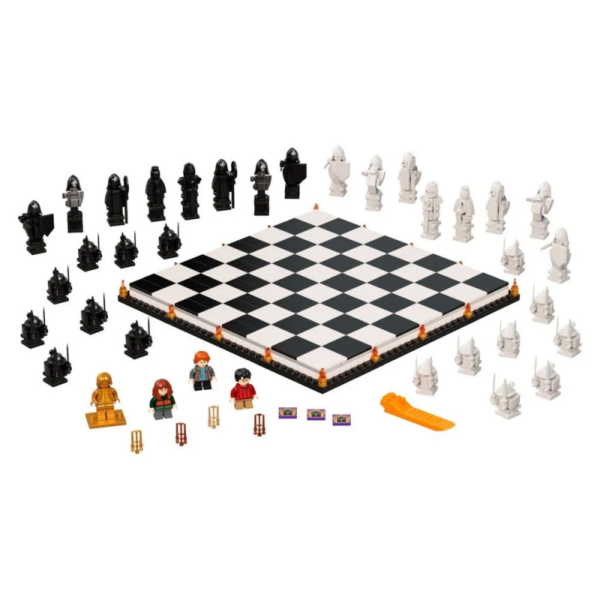 Конструктор «Чарівні шахи» (76392) — магія та стратегія в одному наборі. З 876 деталей ви створите шахову дошку 27×27 см і 32 фігури, натхненні легендарною битвою чарівників. У комплекті також мініфігурки Гаррі, Герміони та Рона, що дозволяє поєднати гру в шахи з магічними сценами.