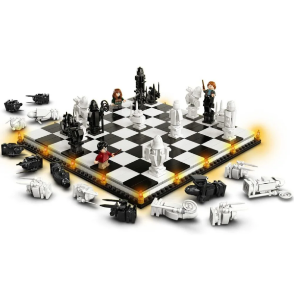 Відкрийте для себе світ, де магія поєднується з логікою! Конструктор «Чарівні шахи» (76392) складається з 876 високоякісних деталей, які дозволяють створити ефектну шахову дошку розміром 27×27 см і 32 унікальні шахові фігури, натхненні легендарною битвою чарівників.